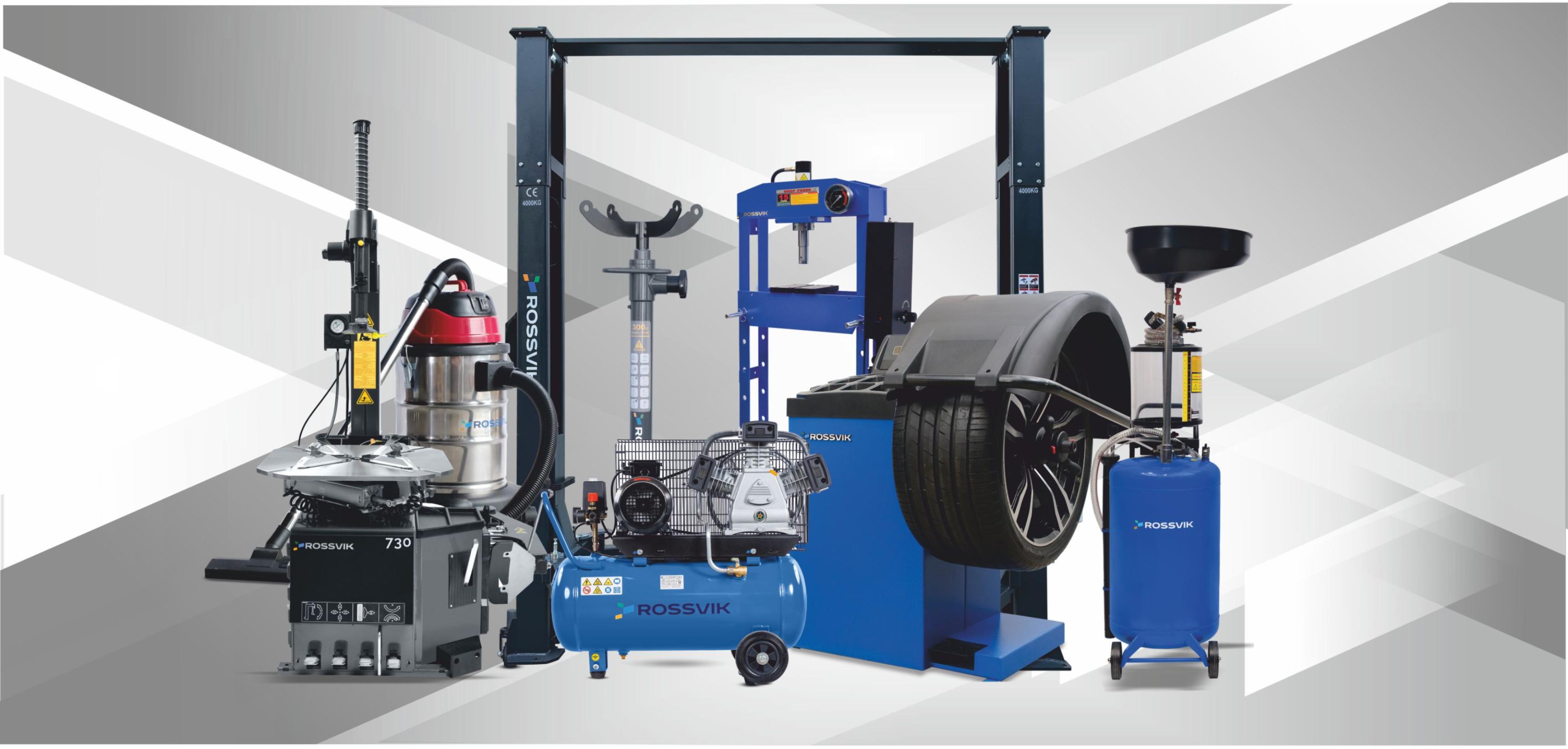В нашем ассортименте: балансировочные станки, шиномонтажные станки, автоподъемники, АВД, пылеводососы, пеногенераторы, стенды РУУК (сход-развал), домкраты, гидравлические прессы, трансмиссионные стойки, борторасширители, вулканизаторы, мойки колес, шипы ремонтные и шиповальные пистолеты, стойки трансмиссионные, гаражные краны, гидравлические тележки, установки для обслуживания кондиционеров, поршневые и винтовые компрессоры, огромный выбор инструмента и многое другое.