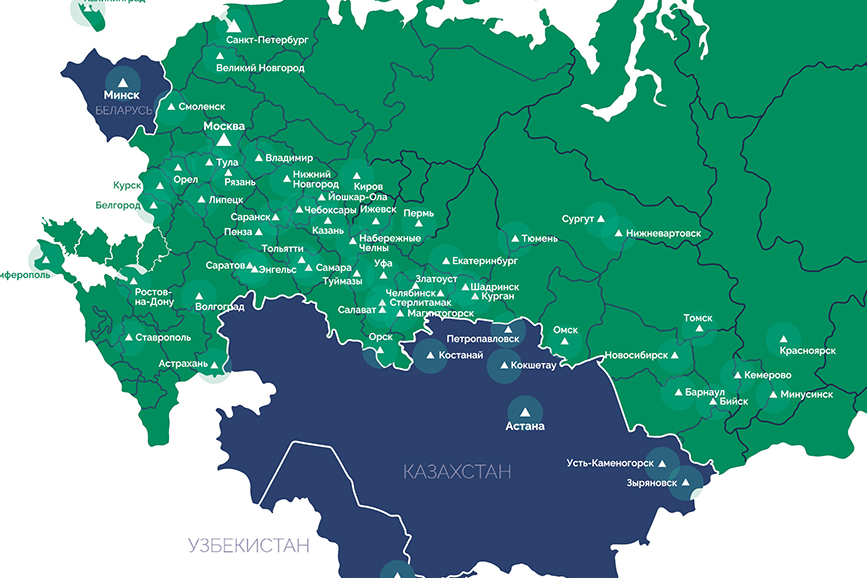 Мы поставляем продукцию по всей России: с нами сотрудничают более 200 дилерских, дистрибьютерских и оптовых компаний в России. А также мы имеем представительства в Белоруссии, Казахстане и Узбекистане. Мы регулярно открываем новые направления и постоянно расширяем ассортимент продукции. В структуре компании собственный Сервисный центр, логистическая служба и Обучающий институт.