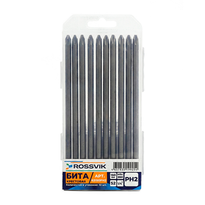Бита крестовая ROSSVIK 63150PH2, PH2, 150 мм, 1/4", сплав S2
