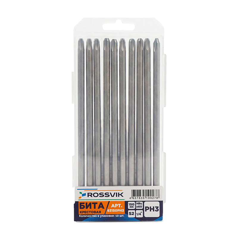 Бита крестовая ROSSVIK 63150PH3, PH3, 150 мм, 1/4", сплав S2