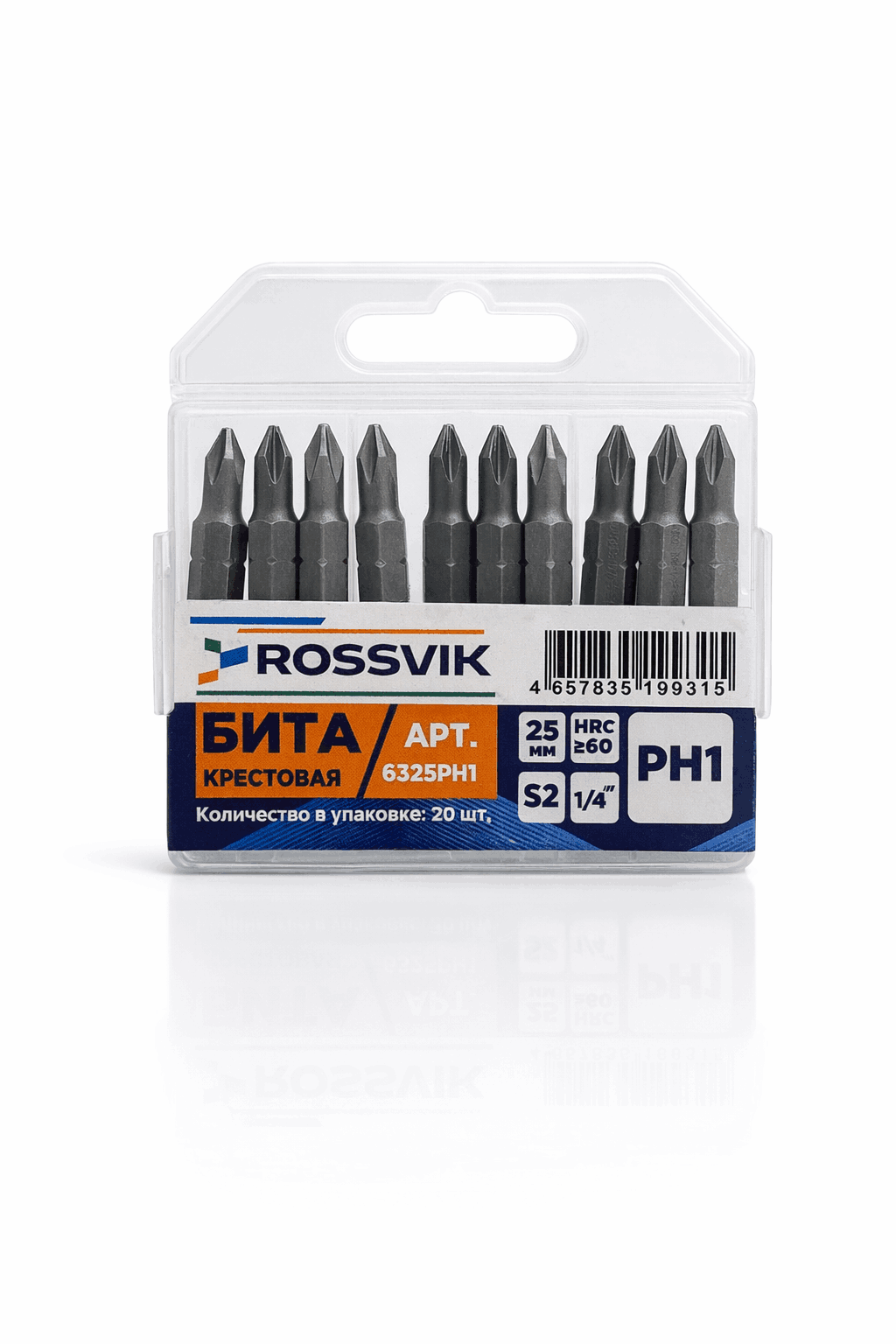 Бита крестовая ROSSVIK 6325PH1, PH1, 25 мм, 1/4", сплав S2