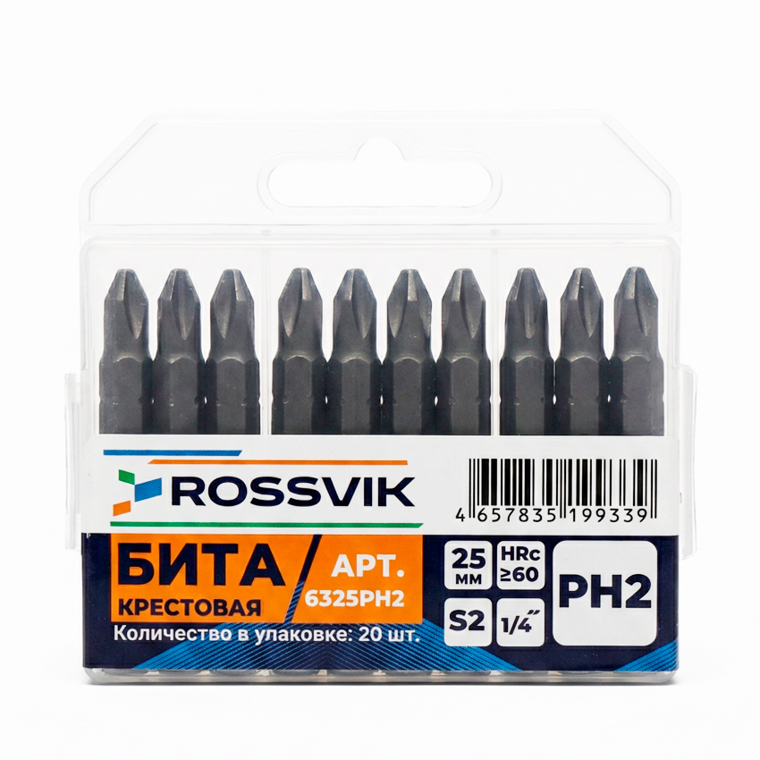 Бита крестовая ROSSVIK 6325PH2, PH2, 25 мм, 1/4", сплав S2