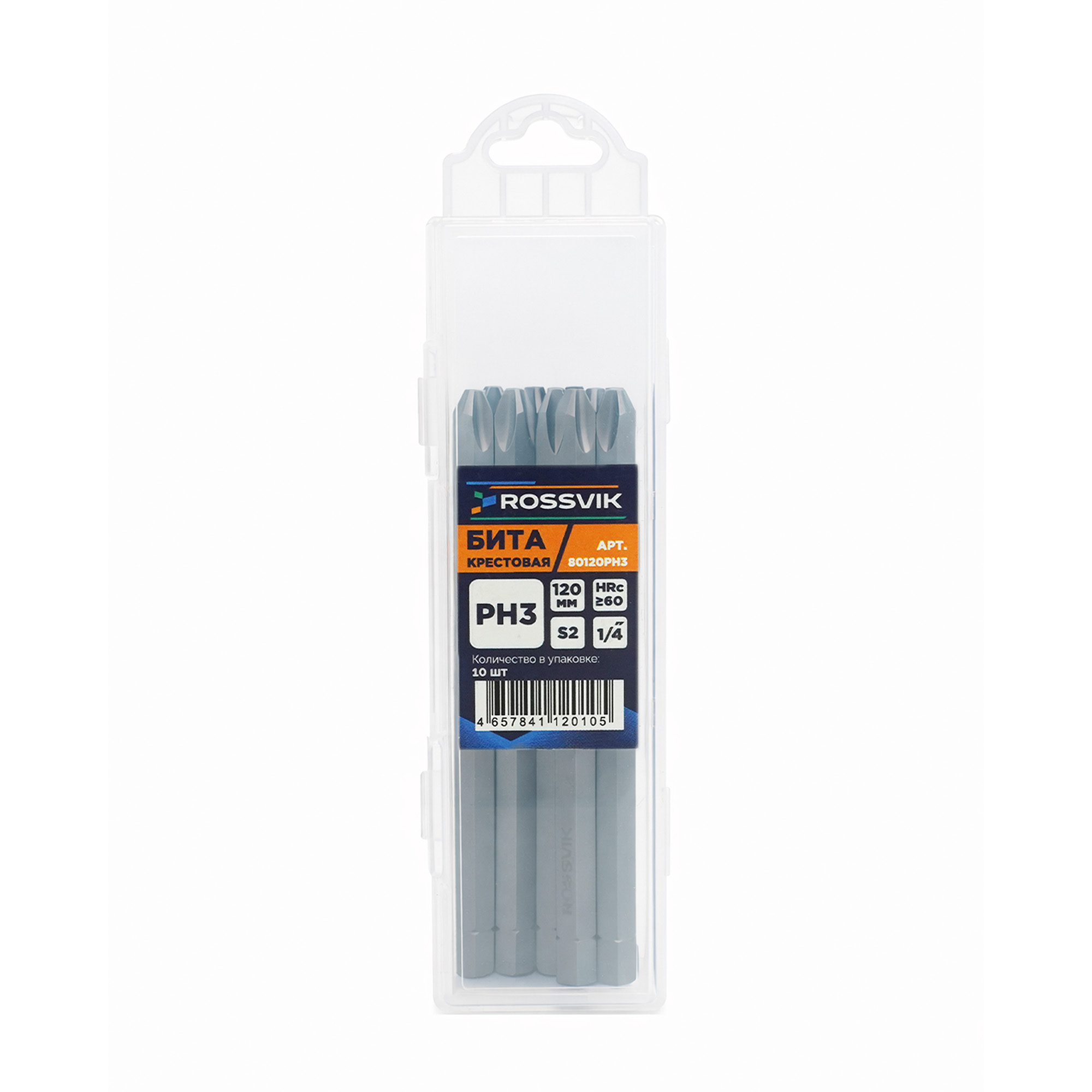 Бита крестовая ROSSVIK 80120PH3, PH3, 120 мм, 5/16", сплав S2