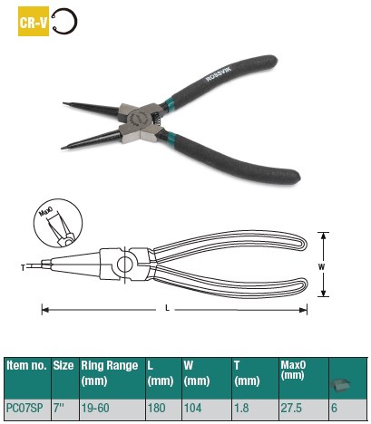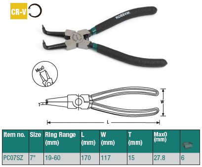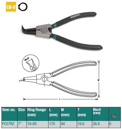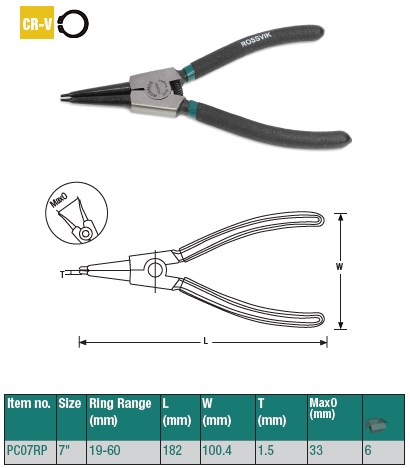 Щипцы для стопорных колец ROSSVIK PC07RP, разжим прямой, захват до 37 мм, длина 180 мм