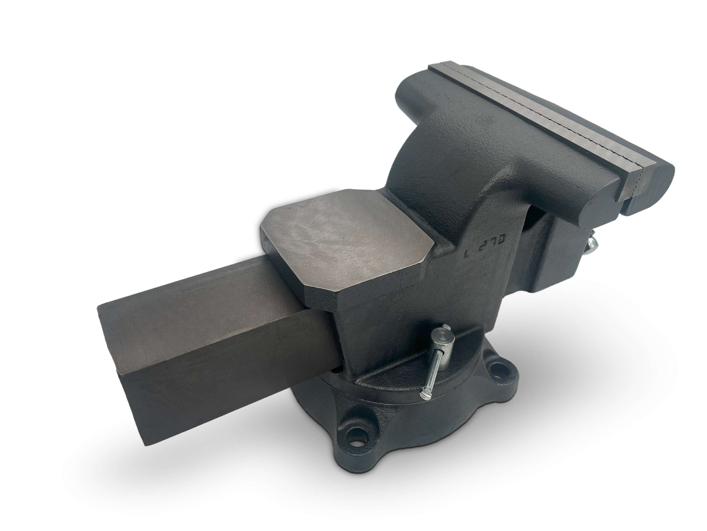 Специальная конструкция с поворотным основанием позволяет регулировать и фиксировать тиски в нужном направлении.