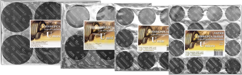 Универсальные латки ROSSVIK (серия U) — это особый вид расходных материалов, который сочетает в себе свойства камерных латок и кордовых пластырей. Они предназначены для ремонта мелких проколов (гвоздевых) как на камерах, так и на бескамерных шинах всех типов.