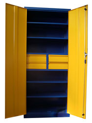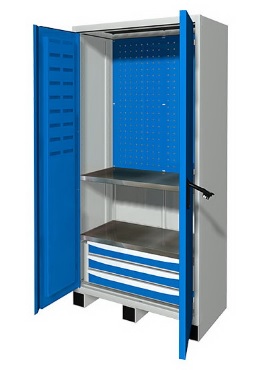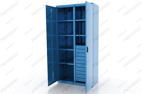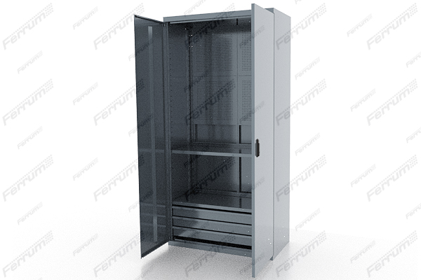 Шкафы представлены металлическими конструкциями повышенной прочности, предназначенными для жестких условий эксплуатации в мастерских, цехах и раздевалках.