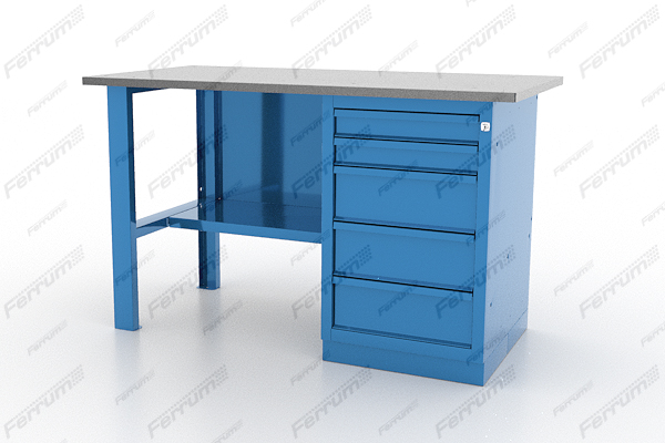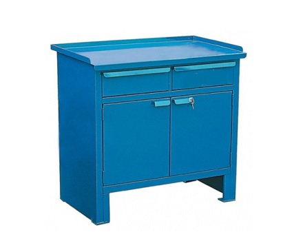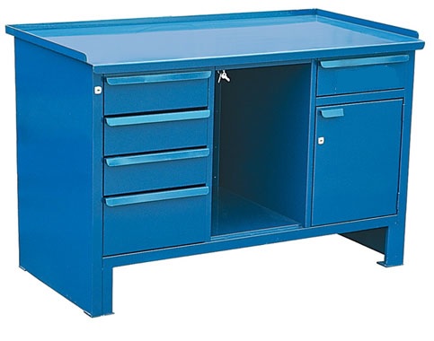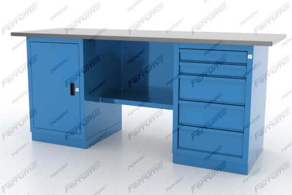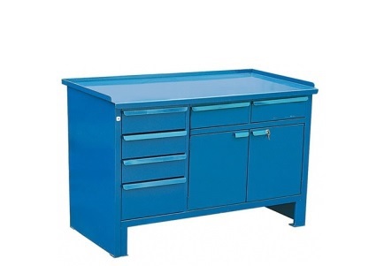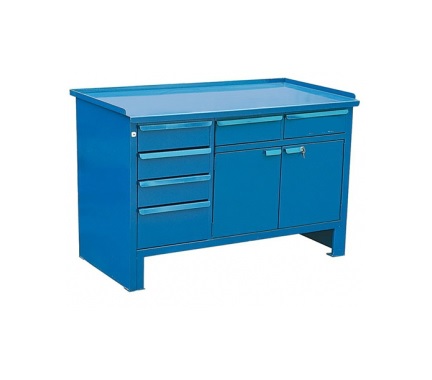 Верстак 2-тумбовый ВВС-215-3, с нишей, дверцей и ящиками, 870*1300*700, синий (RAL5010)