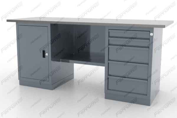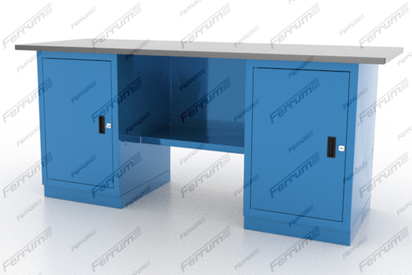 Верстак двухтумбовый слесарный предназначен для выполнения различных слесарных работ и для хранения инструмента, крепежа и прочих предметов. Применяется на станциях технического обслуживания и ремонта автомобилей, на других предприятиях. Жесткая сварная конструкция и металлическая столешница выдерживают большие нагрузки, обеспечивают продолжительный период эксплуатации. Ширина столешницы 700 мм.