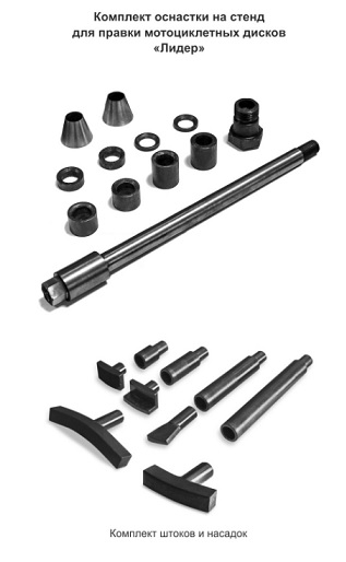 Стенд для правки мотодисков Лидер. Данное оборудование создано с учетом особенностей ремонта мотоциклетных дисков и предназначено для восстановления геометрии таких дисков диаметром до 19 дюймов.